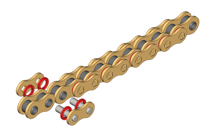 ● 摩托車密封圈鏈條采用優質的材料和潤滑油脂、先進的加工工藝,產品具有高疲勞強度、高抗磨損性能等特點,以滿足不同排量、不同用途的摩托車使用需求,廣泛應用于各類摩托車賽事以及公路使用摩托車。